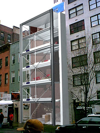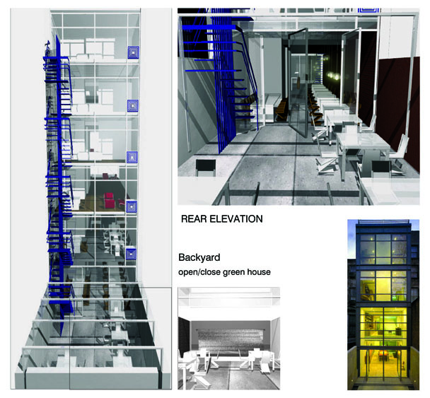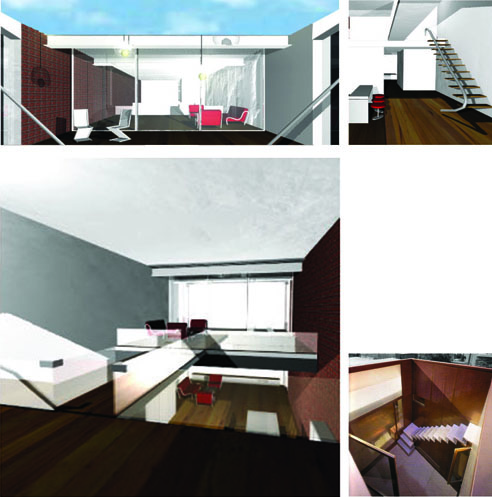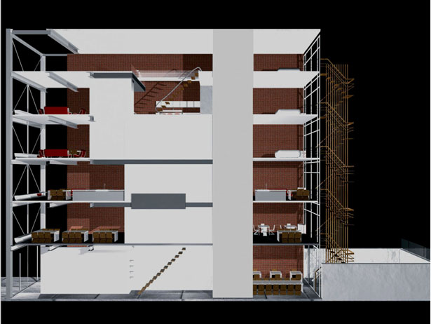 בניין מגורים קיים בבעלות משפחה אחת אשר בחנה את האפשרות של שינוי המבנה למטרת תוספת שטח ושינוי מס הדירות. הרעיון היה ליצור מבנה לופטים כאשר יתבסס על שלד המבנה הקיים עם תוספות שטח ושינוי חזיתות. הקומה הראשונה משמשת למסחר ומעליה 4 קומות של לופטים פתוחים למגורים: אחד בכל בכל שטח הקומה, ובקומת הגג דירת דופלקס בשני קומות. מבנה דירת לופט מתאפיין בשטח קומה פתוח לחלוטין וגובה תיקרה גבוה ולא סטנדרטי עם מחיצות ניידות ליצירת חללים סגורים. עיצוב הלופטים מתאפיין בקו מתועש בעיצוב יותר מחוספס ולא נקי – ריצפת בטון, תעלות מיזוג פתוחות, מערכות חשמל גלויות, קירות לבנים חשופות. חזית הבניין אף היא עוצבה בסיגנון תעשייתי מודרניסטי. נעשה שימוש בקונסטרוקציית ברזל חשופה בשילוב זכוכית ובטון חשוף.